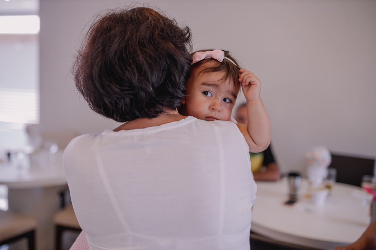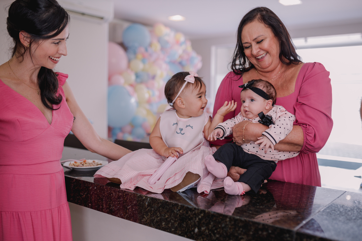 Assim, a festinha de 1 ano da Maria Sofia foi incrível. no salão de festas do próprio condomínio, ao lado dos familiares e muita gente querida.