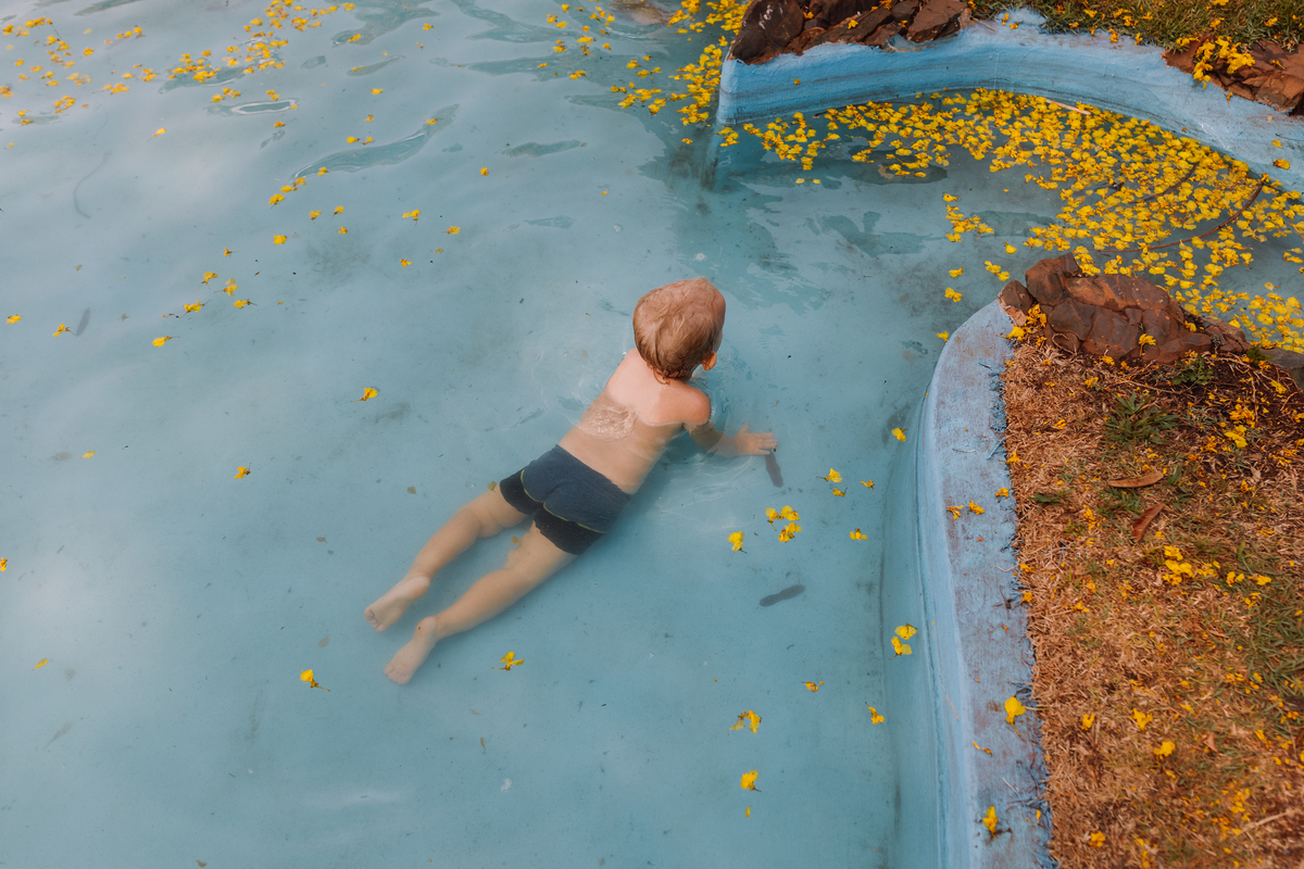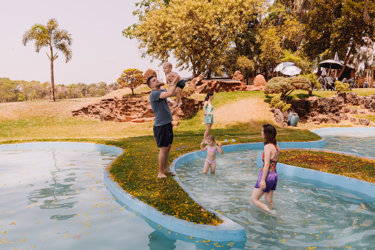 Em um domingo delicia na fazenda, com direito a muita piscina e baguncinha em família. Ah, ele até subiu no trator que é apaixonado! Rs