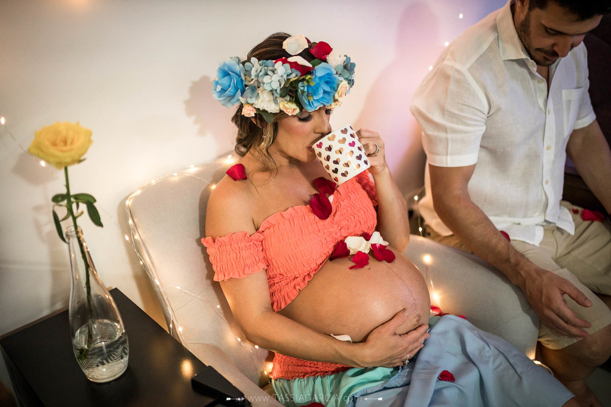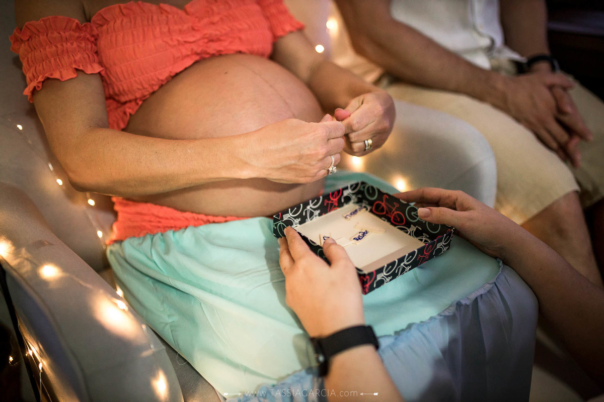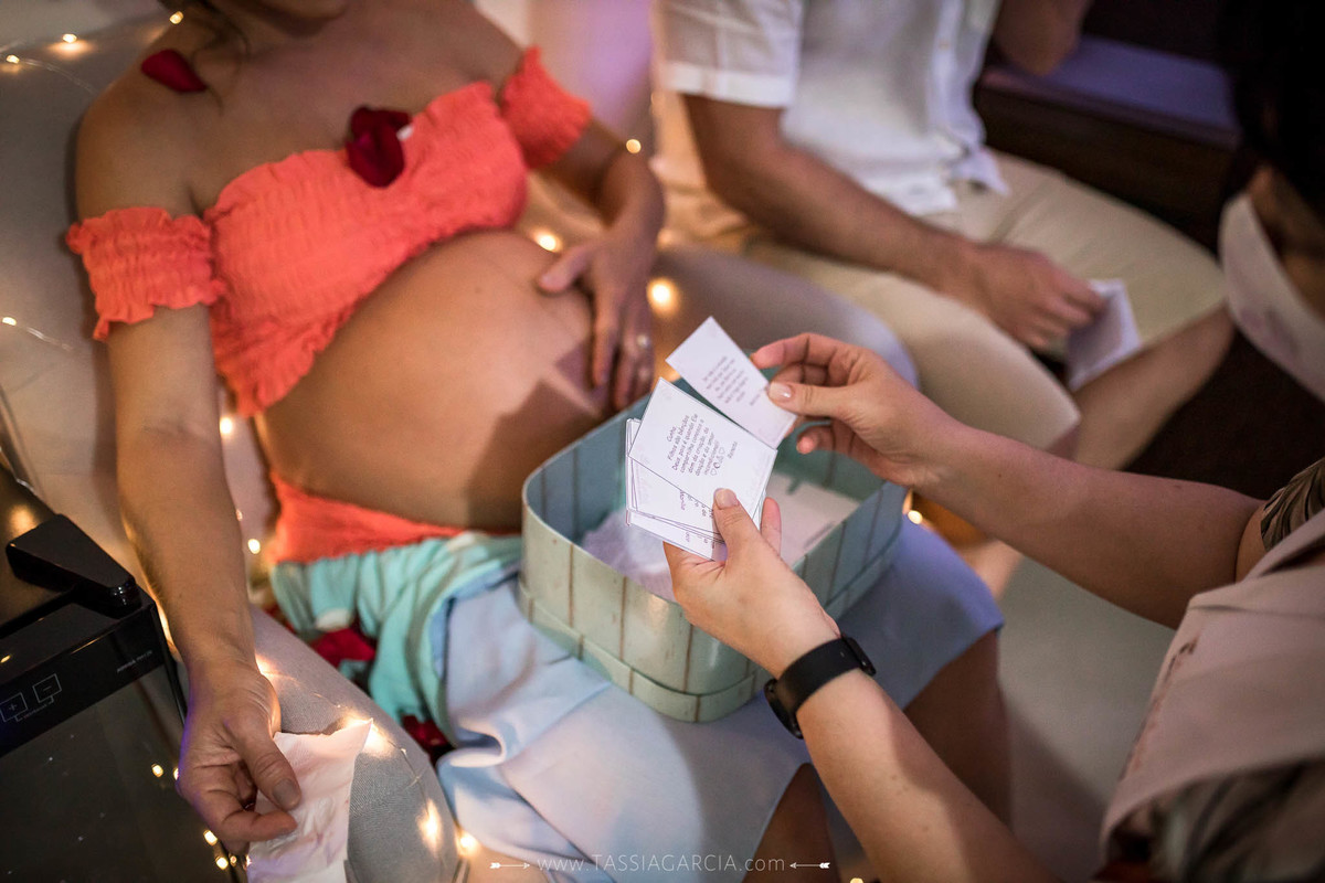 Em alguns casos é feito uma pintura na barriga, materializando aquele bebê que em breve vai chegar. Pode-se também montar uma caixinha, com mensagens e itens utilizados no momento do chá para a mamãe deixar guardada e sempre que precisar de palavras de encorajamento ela pegar essa caixinha e relembrar daquele momento tão especial.
