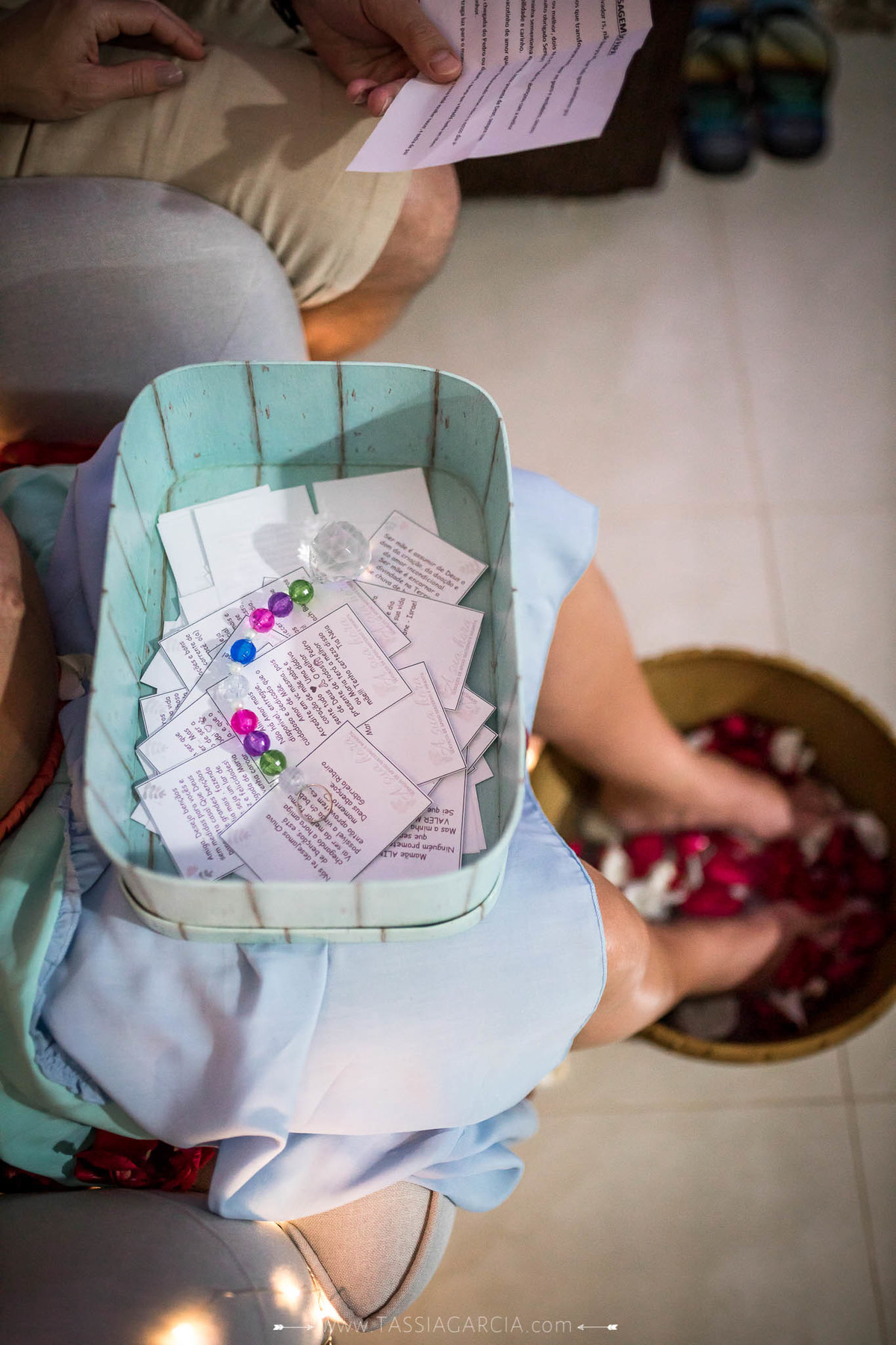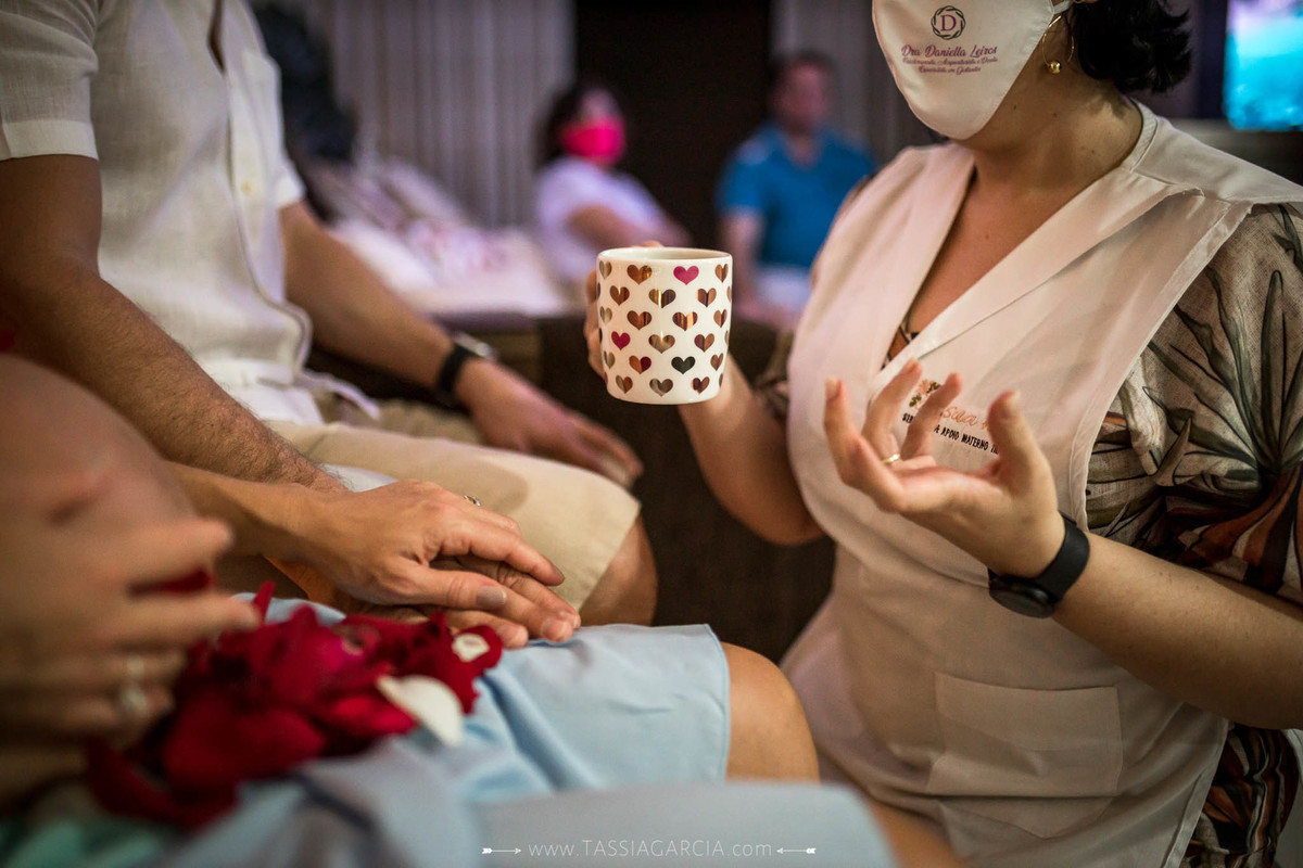 Enquanto a futura mamãe fica ali relaxando, os convidados vão um de cada vez fazendo massagem nos pés, entregando flores e dizendo palavras de encorajamento e carinho...É difícil não se emocionar!